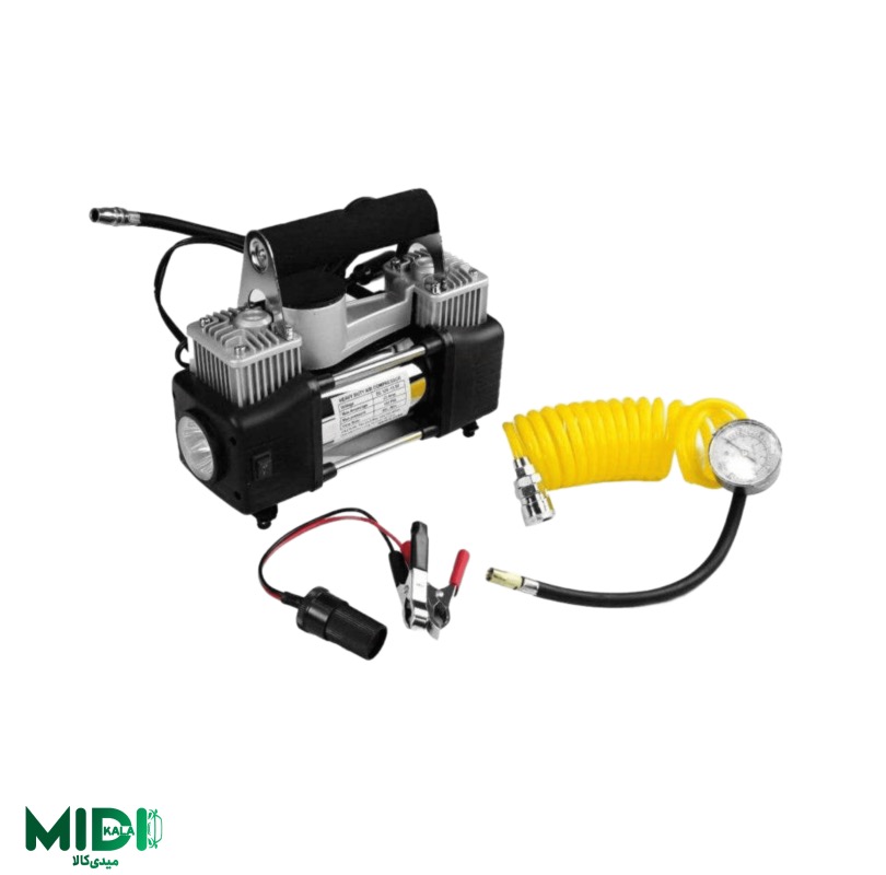 لوازم کامل مورد نیاز برای پنچر گیری نیز همراه این کمپرسور به علاوه یک شلنگ فنری 3 متری نیز در کیف قرار دارد.